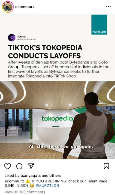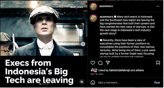 Whilst researching the Indonesian startup ecosystem, I noticed that a particular social media account often came up. The account was Ecommurz, an Instagram presence that describes itself as an ‘Ecommerce and Tech Meme Factory’ and ‘Indo Biggest Tech Execs & Workers Community’. Despite its casual and humorous outlook, Ecommurz might just be the key for workers (and others) to navigate the intricacies of working culture within Indonesian startups.
